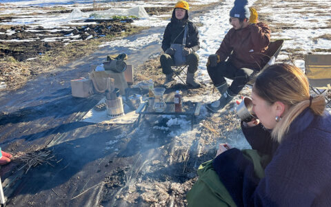 お昼は豚汁やおでんで体を温めます。最高に美味しい!