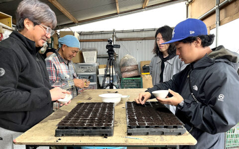 まだまだ寒い軽井沢ではビニールハウス内で種から苗が育つまで大事に見守ります。