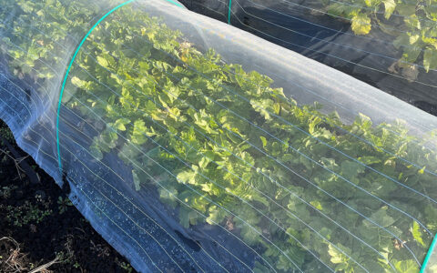 また、虫などがつきやすい葉物野菜(レタス、キャベツ)などは防虫用の網をかけてあげます。