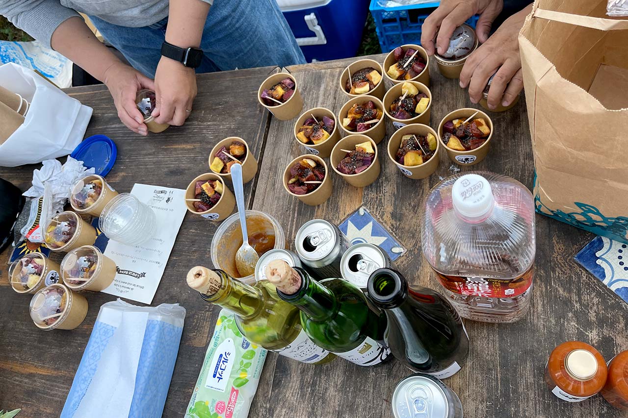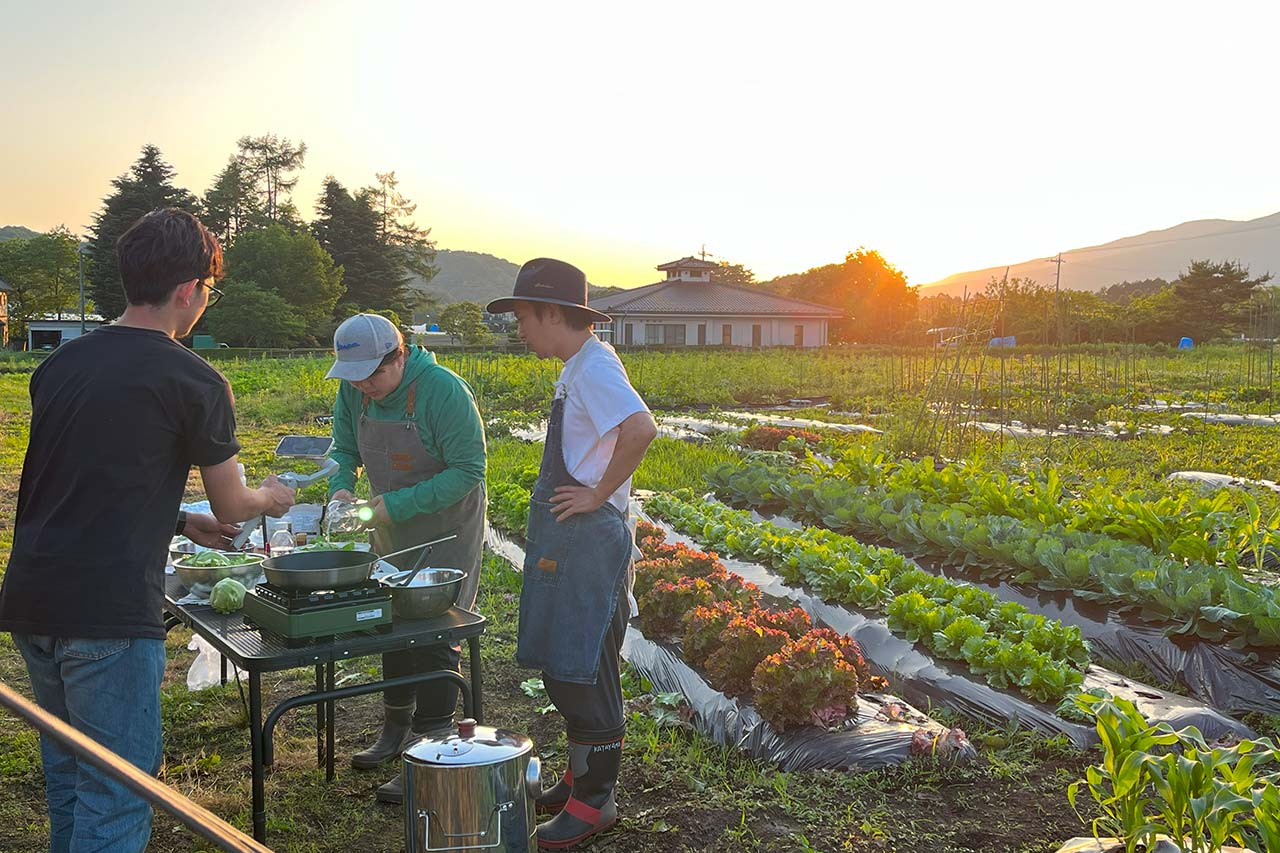 お付き合いのあるイベンター、ドリンクを発注している酒屋、マネージャーなどを招き、お昼は畑で採れた野菜を調理し、振る舞ったりもしています。
