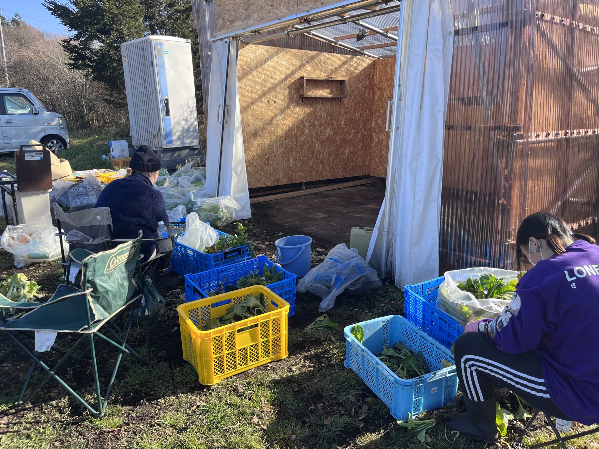 収穫した冬野菜をみんなで綺麗にし、小屋の中もしっかり掃除をしました。