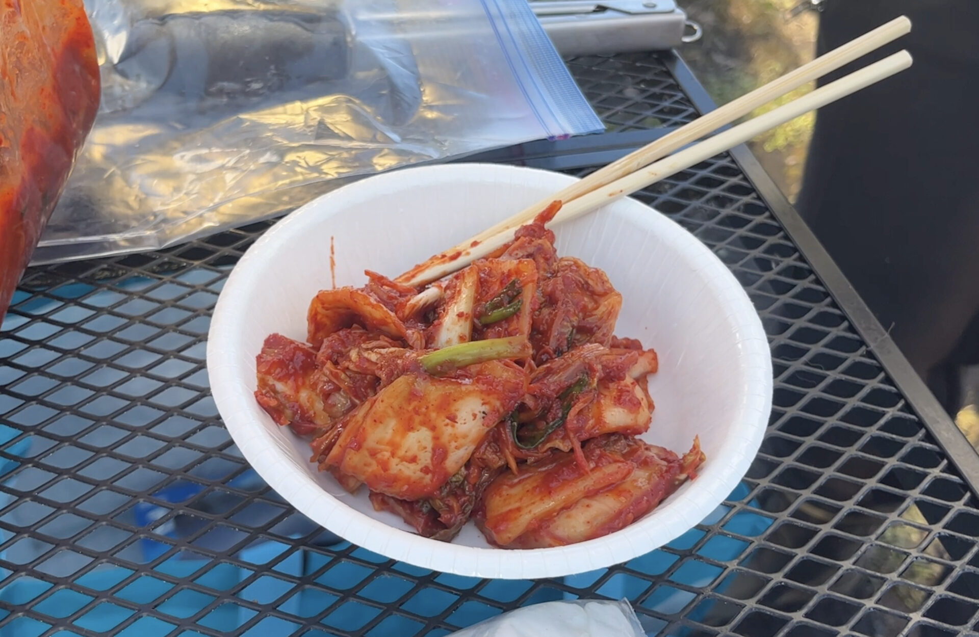 そして今日のお昼は畑の大根が入った豚汁、畑の白菜で作ったキムチです。