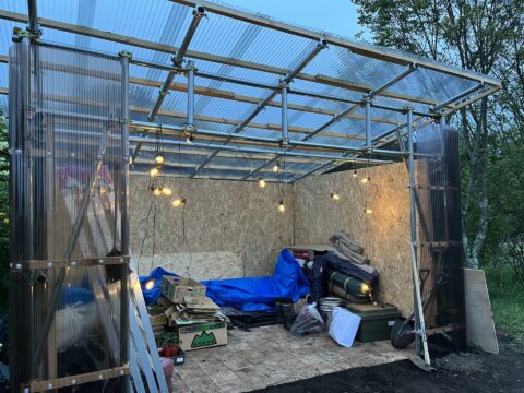 小屋には壁が付き、やっと小屋らしくなってきました。
