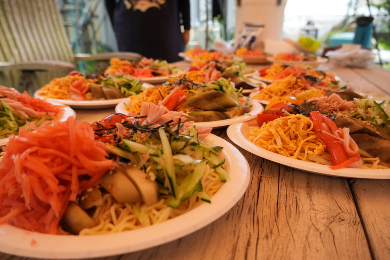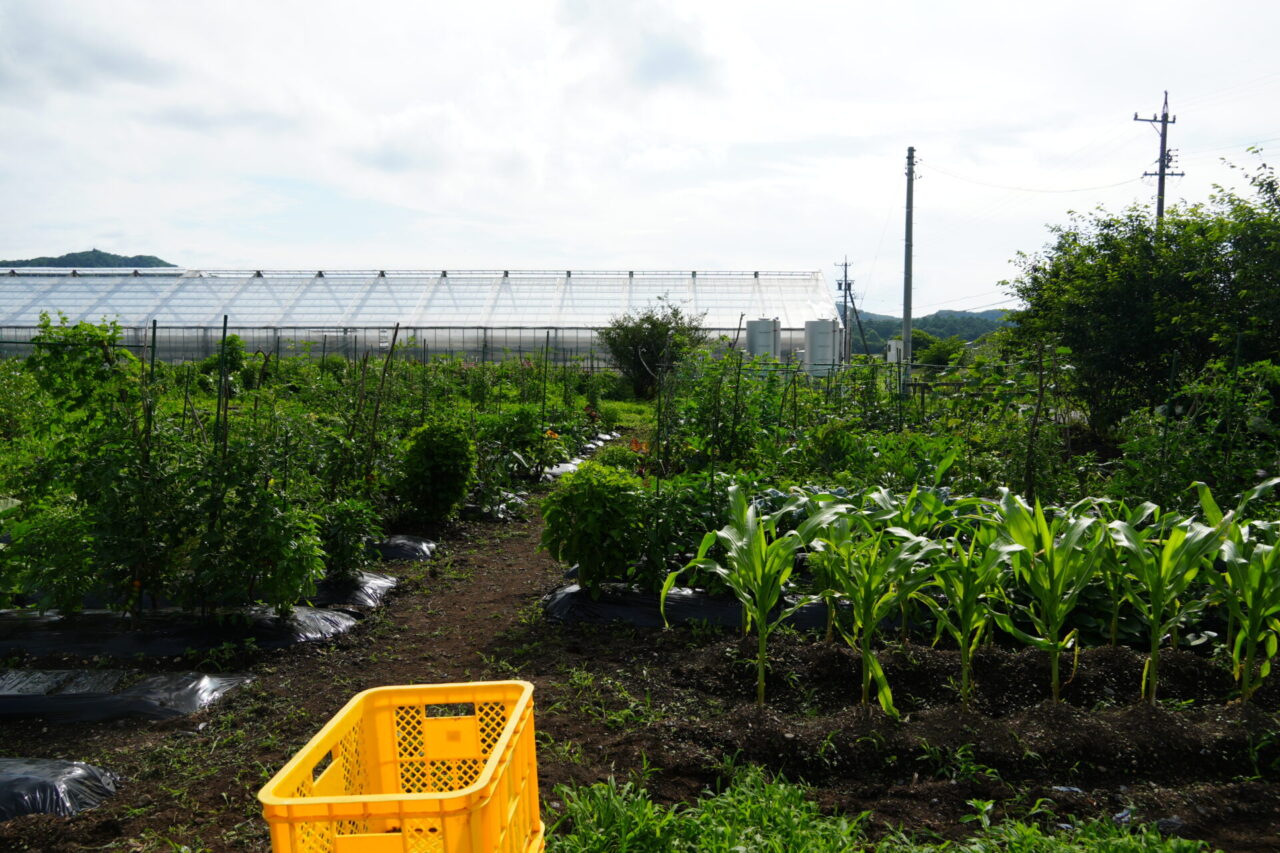 dk's FARMで収穫したきゅうりやナス、トマトをトッピングに乗せ、