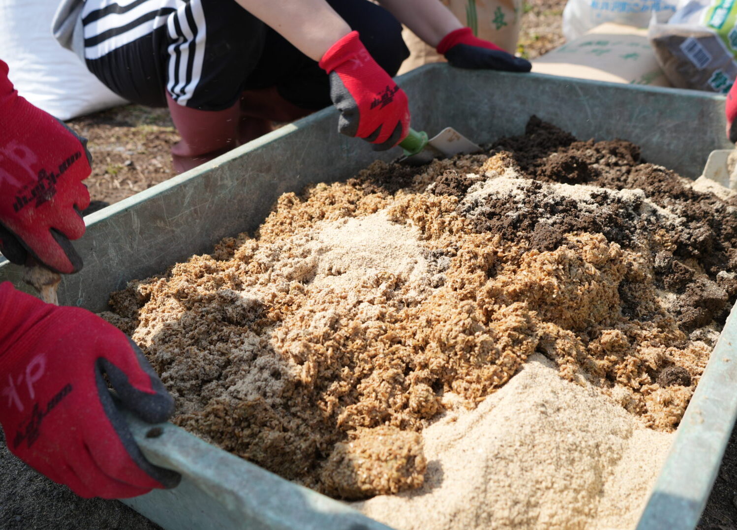 ビール粕と一緒に様々な材料をひたすら混ぜ合わせます💭
